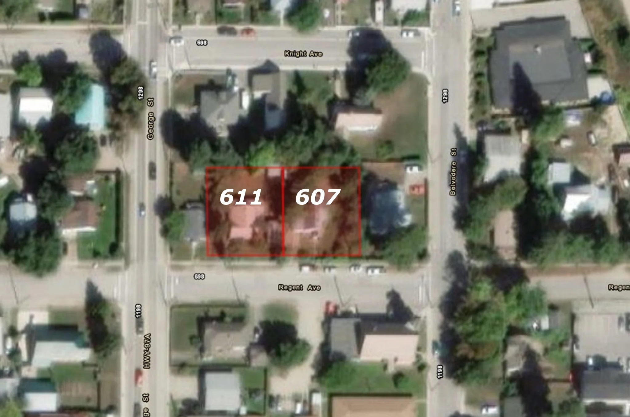 This property, number 607, is one of two properties to be sold together: Conditional to the unconditional sale of the Neighbouring Property 611 REGENT AV Enderby BC V0E 1V2. The two properties are to be sold together (giving a combined lot width of approximately 178 ft by approximately 103 ft in depth) for alternative use of the land (subject to permissions from the relevant authorities) or for the purpose of owning both properties as they exist currently; provided that they are purchased at the same time. Please see MLS#: 10370393 for the cooperating neighbouring property.